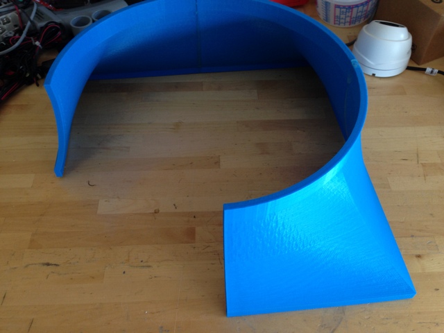 at this link. At work, I was tasked with making an air plenum. This project was sponsored by NIOSH. The group was formerly known as The Bureau of Mines. Inside deeper mines, there are refuge chambers for miners to wait for help in case of an emergency. Currently, they are using bottled oxygen (very dangerous), and air scrubber curtains to control CO2 buildup, but those are exothermic (get hot). Imagine waiting 3 days for help in a box full of people, sweating so profusely it puddles on the floor. Our goal was to add a cryogenic air supply to a refuge chambe inside a mine. This would provide 96 hours of COLD - PURE breathing air. To convert the liquid to a gas, it must go through a heat exchanger. This is located inside the plenum, which uses a an air amplifier (venturi - no moving parts) to push warm air across the heat exchanger. This warms the liquid and converts it into a breathable gas. This gas feeds the air amplifier, which pushes the now cold air down a duct, into the chamber. Absolutely amazing technology developed for the Space Program, now being applied to industry. Anyway, back to my project. The 16" square plenum needed to connect to a round duct. My engineer designed the adapter flange, and split the file into 4 sections. Each was 3D printed, then epoxy was used to bond the sections. |