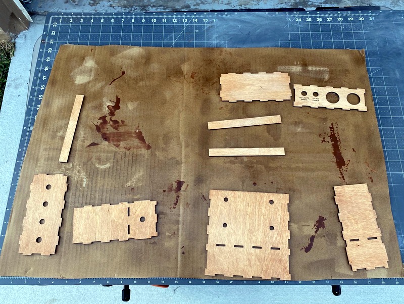 ![]() After a few mods to prototypes, I was finally satisfied with the design. The parts don't take long to cut out with a K40 laser. I used a gel stain to prevent uneven color. |