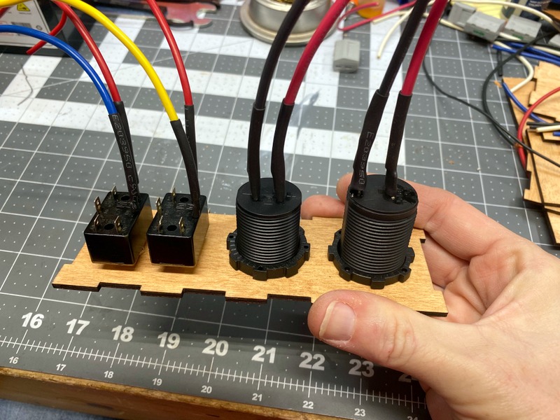 ![]() Man, using CAD software to layout the holes, and a laser to cut them, is FAR easier than the old methods I used in the past! I soldered wires to the terminals, but Fast On connectors would have worked as well. |