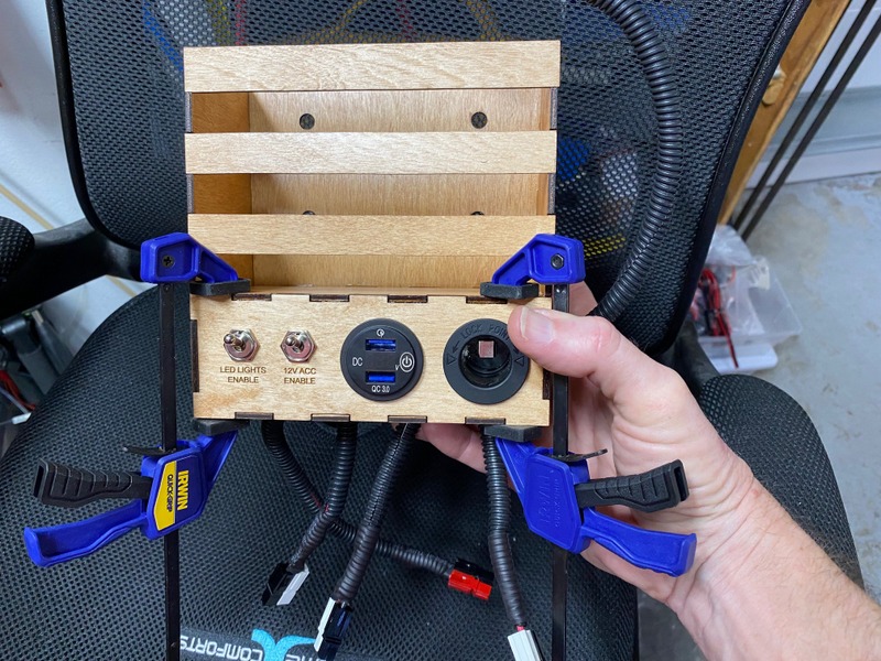 ![]() I typically use a cyanoacrylic adhesive to assemble laser cut boxes, but I used epoxy due to the weight of the battery. |
