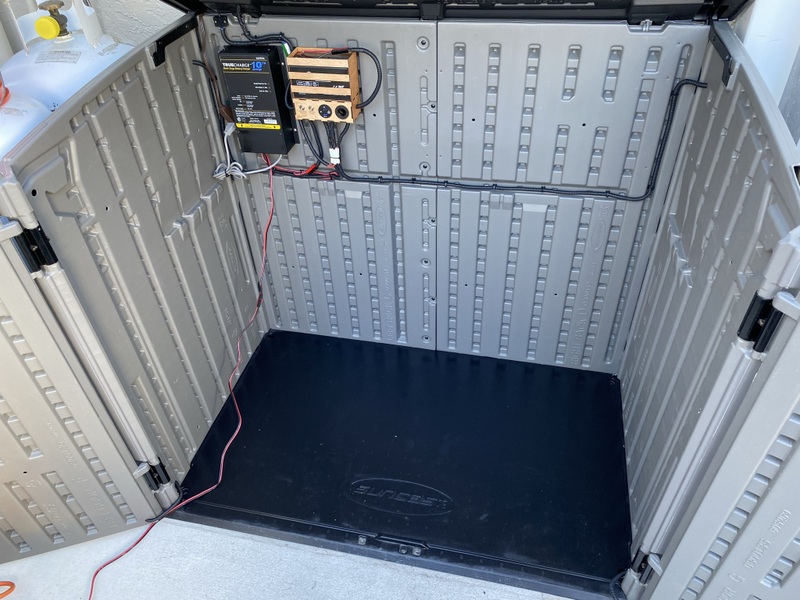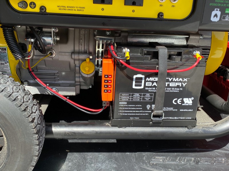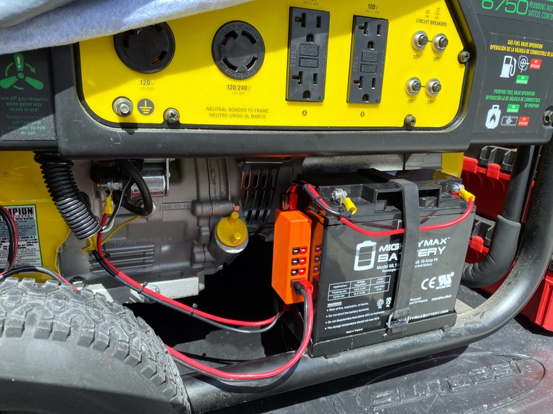 ![]() All wired up, and ready for use. The long cable on the left side connects to the generator battery to keep it charged. |