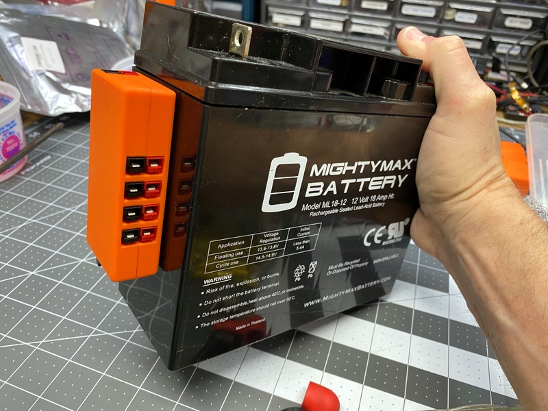 ![]() I 3D printed Anderson PowerPole power distribution boxes. The connectors are put inside, and the pins soldered together. The 3D files are located here - LINK. |