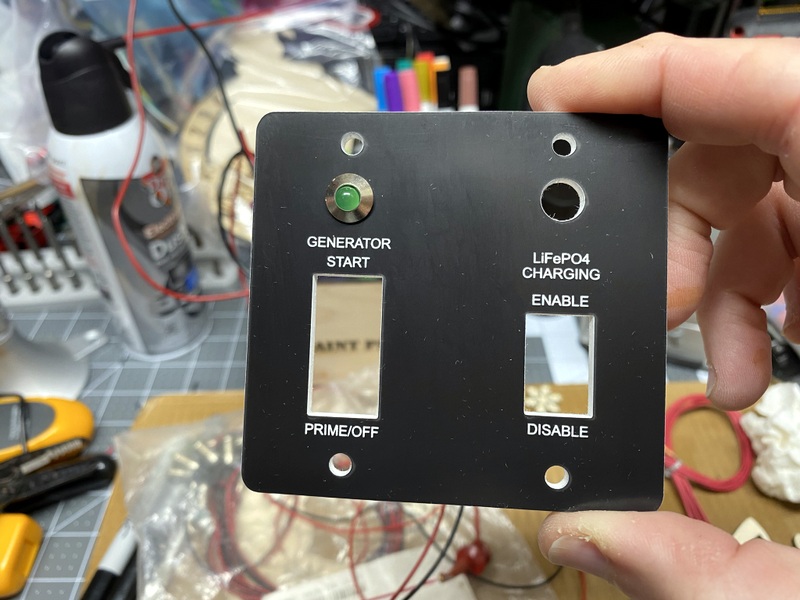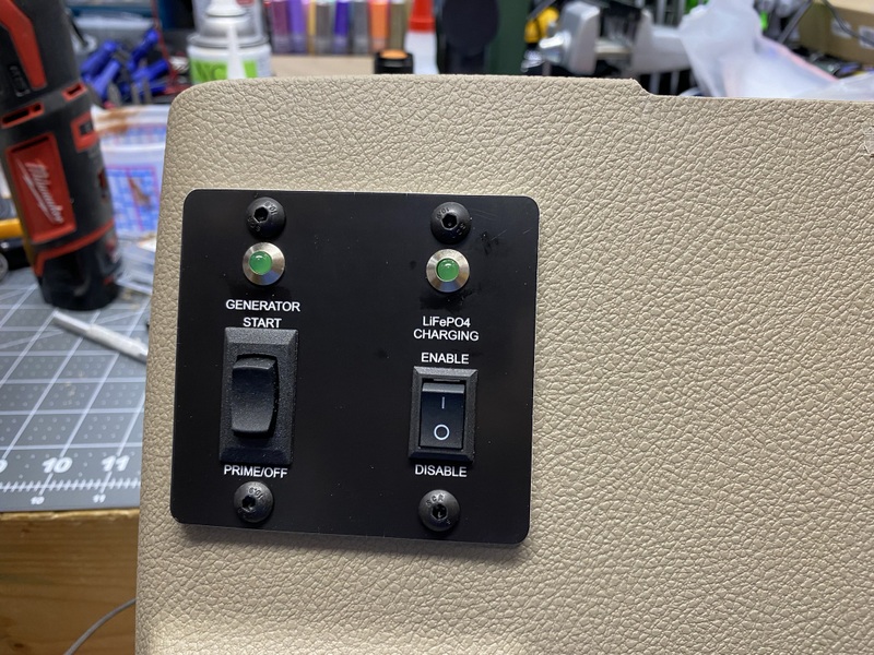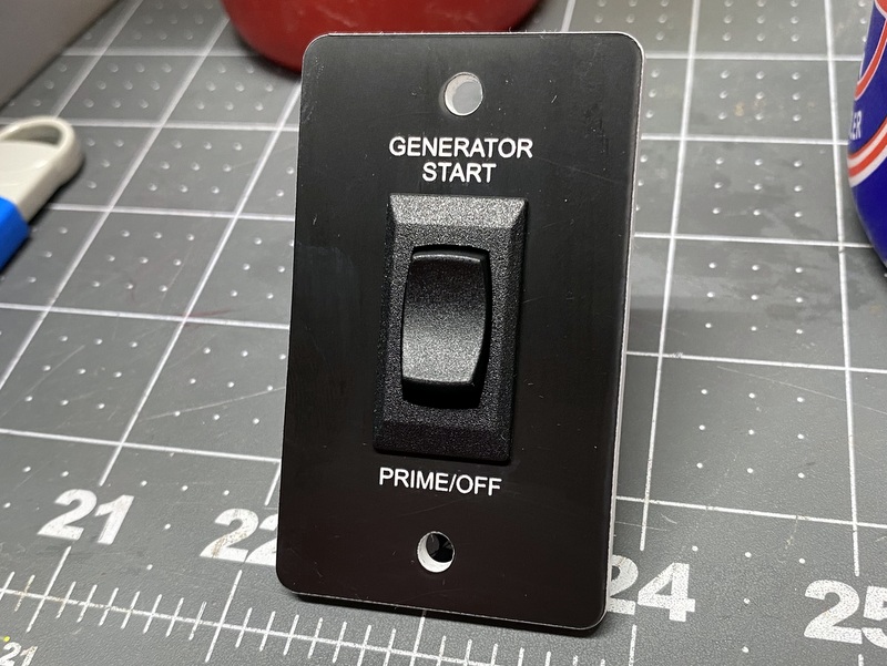 someone is trying to talk to me. This modification to add an additional remote start/stop switch is quite simple. You don't need a $70 Onan brand switch. Four wires, and a $8 switch will do the job. You simply parallel the new switch, to the existing one. Details in the pictures below. I am adding LiFePO4 batteries to our RV, and I'm modifying a lot of different electrical items. The switch panel I added to my RV isn't what most people would want, but I made a similar one that should work for most applications. The switch can be mounted anywhere, and the custom bezel makes it appear as a factory option. The usual disclaimers apply. This is how I modified my motorhome. You need to check the wiring of your motorhome before proceeding. Any damage you might do to yours, is no fault of mine. I took the time to reserach my RV, you'll need to do the same for yours. As an Amazon Associate I earn from qualifying purchases. Clicking the links cost you nothing extra, but does help support my website, thank you! |