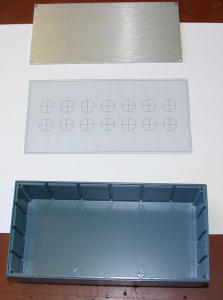 A clear sheet was applied to the face, and sprayed with a clear coat. Once it dried, the holes were cut with an X-Acto knife, and the components installed. We made LOTS of project boxes in our shop over the years. It wasn't until I retired that I got my hands on a laser cutter. This sure would have simplified those projects. |