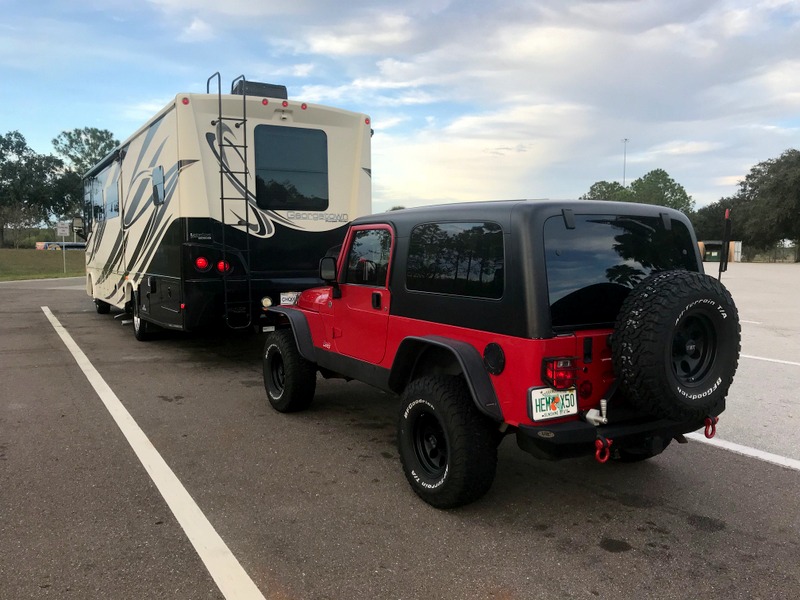 pros/cons to every RV, but this one suits our needs for now. There are some places we like to travel that having just the RV isn't practical. Towing our 2006 Jeep Wrangler Unlimited is great. Jeep is one of the few manufacturers that intend for their vehicles to be towed, without limits. Most other vehicles that can (most can't), either limit the speed to 50 MPH, or 50 miles, OR BOTH. The engine then needs to be started to circulate the transmission fluid. The Jeep has a true transfer case, which is put into neutral for towing. The automatic transmission is actually put into Park. No miles accumulate while towing. There are accessories that are required to make this safe, and I'll cover those later. It has an onboard Onan 5500 Watt generator. This allows both roof top A/C units, and the refrigerator, to run while driving. Also keeps the entire RV cool at rest stops. This is our second RV purchased from Lazy Days. The first purchase was excellent. The dealership took care of any and all issues, and was even helpful after the sale. This purchase was a major disappointment. Their volume of sales has ruined customer service during, and especially after the sale (well within the 30 day warranty). Our next RV may be a new model, but we'll be looking elsewhere. |