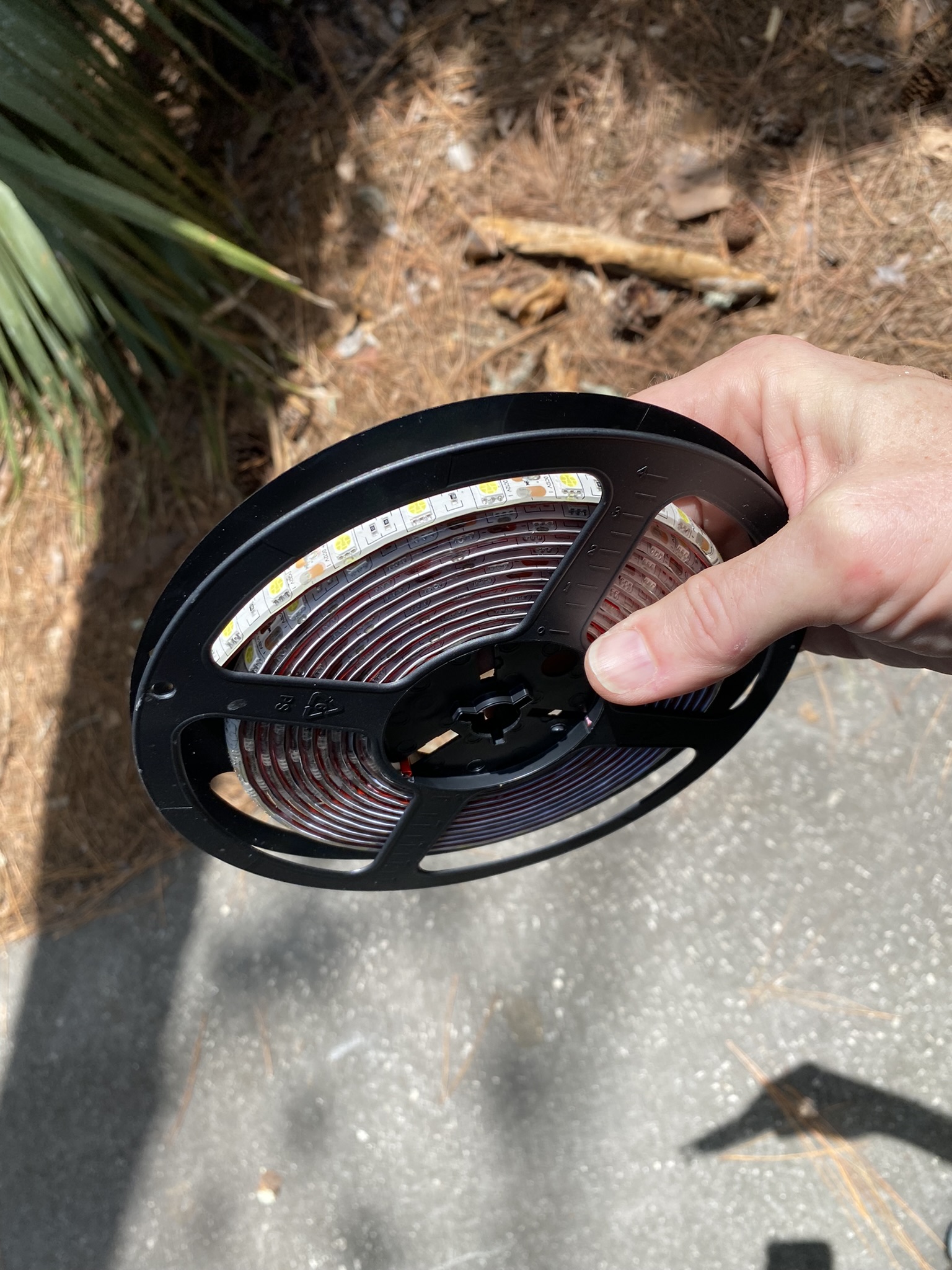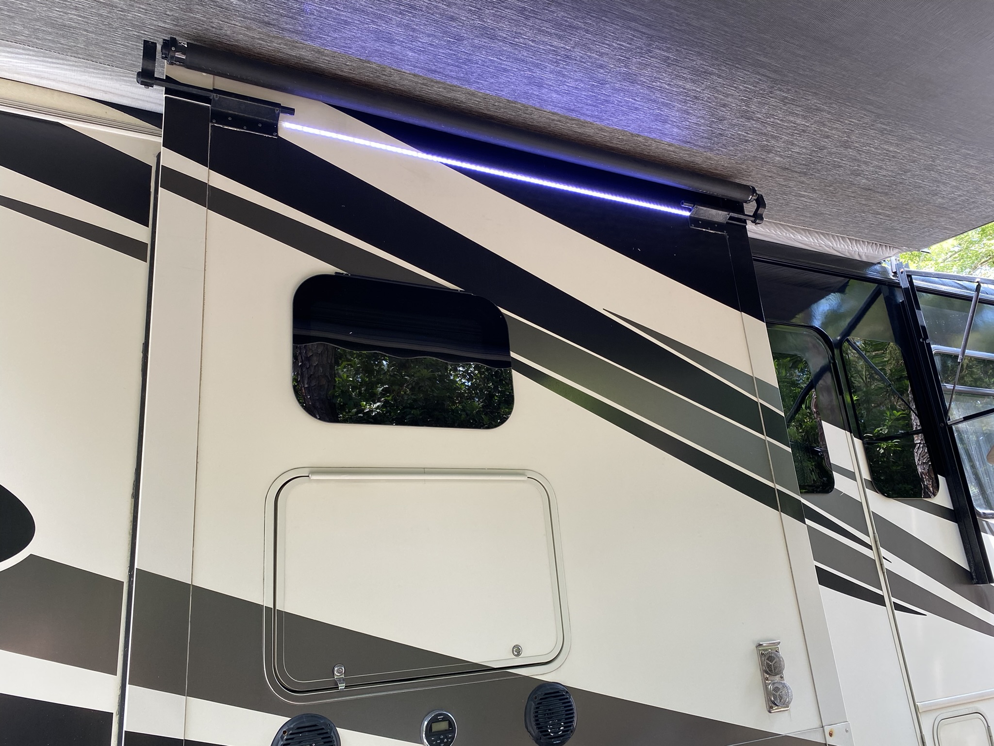 The LED strip on our previous Class A motorhome failed. It slowly grew dimmer over time. It is very simple to replace with another peel & stick LED roll, that already has wires connected on one end. Even if your RV didn't have existing wiring, you only need to supply 12V to these LEDs. Many older RVs have a basic incandescent light fixture by the door. These LEDs can be tied into the same wiring as they are very low current. |