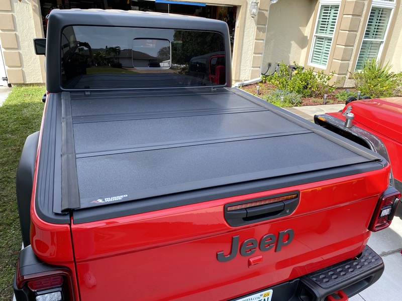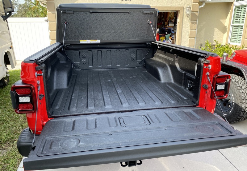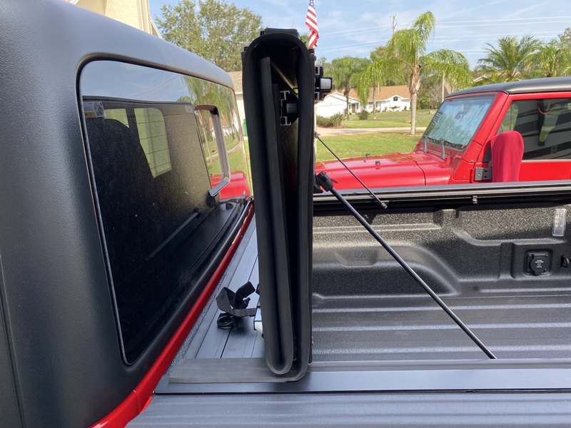 height of the payload, and are difficult to remove. This cover works with the factory Trail Rail System. Just remove the bolts on the front rail, slip the mounting brackets for the cover behind it, re-insert the bolts. Almost no water gets in even during a heavy down pour. It looks like a factory product. I highly recommend this product! |