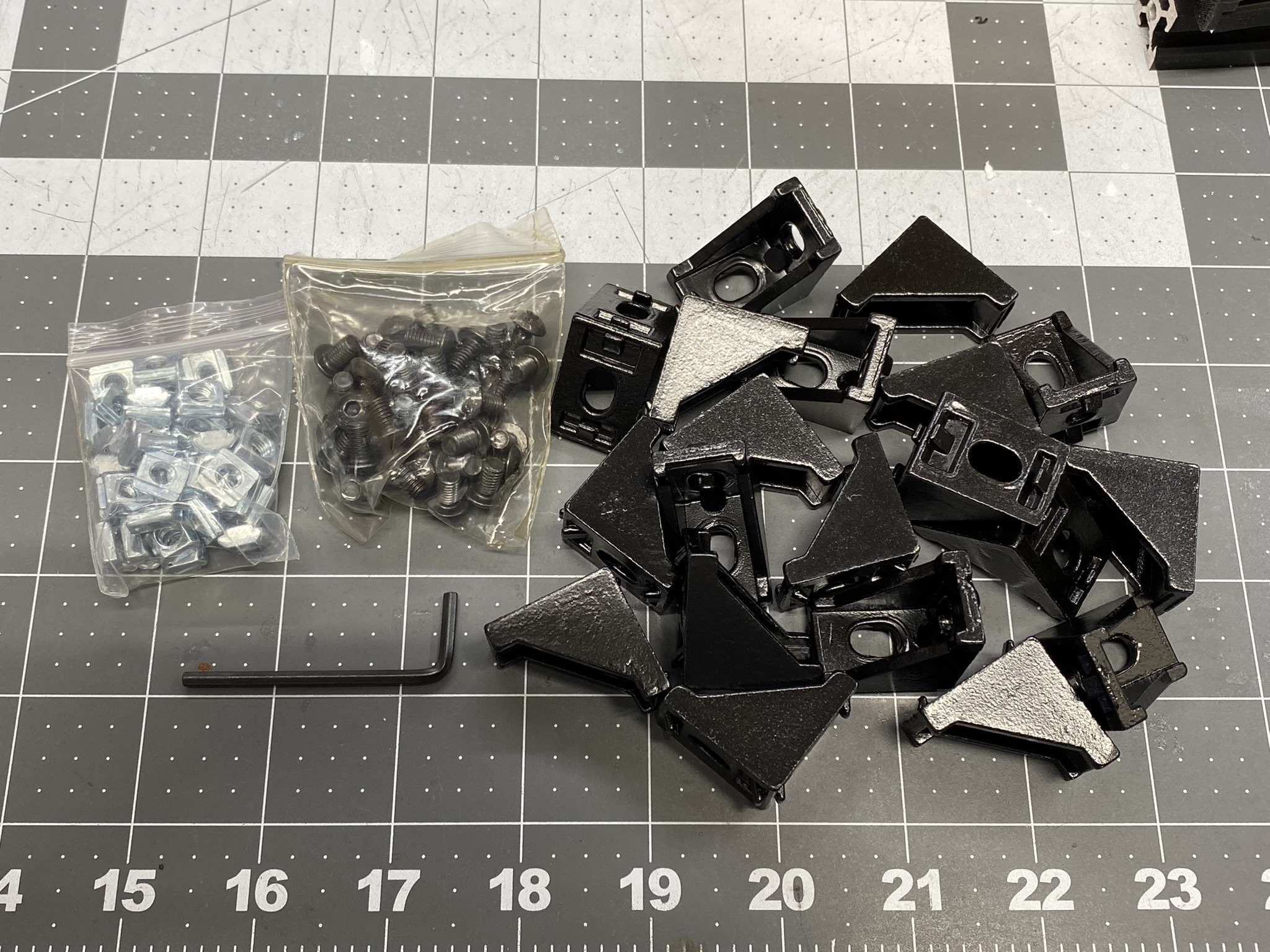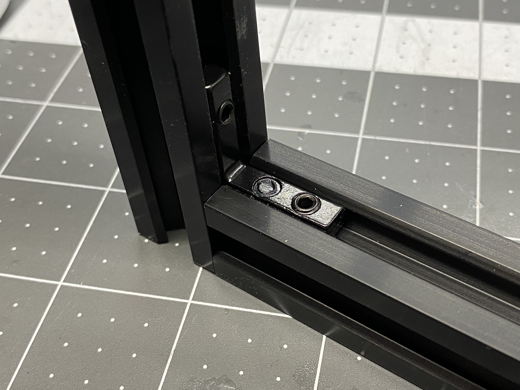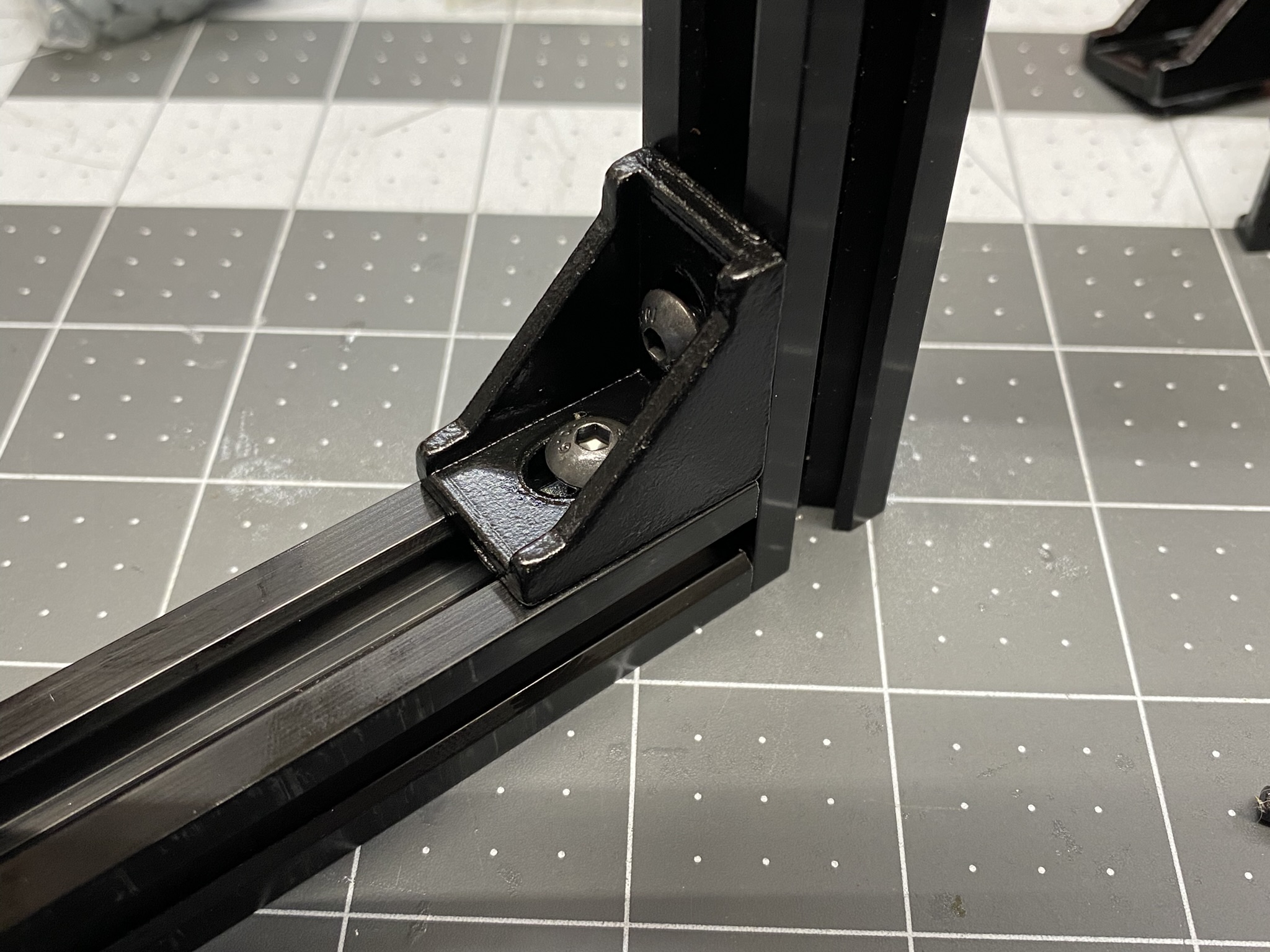 2020 extruded aluminum is awesome stuff. It's a smaller size than the common 8020 material, but well suited for this project. The sections are held together with brackets with set screws. |